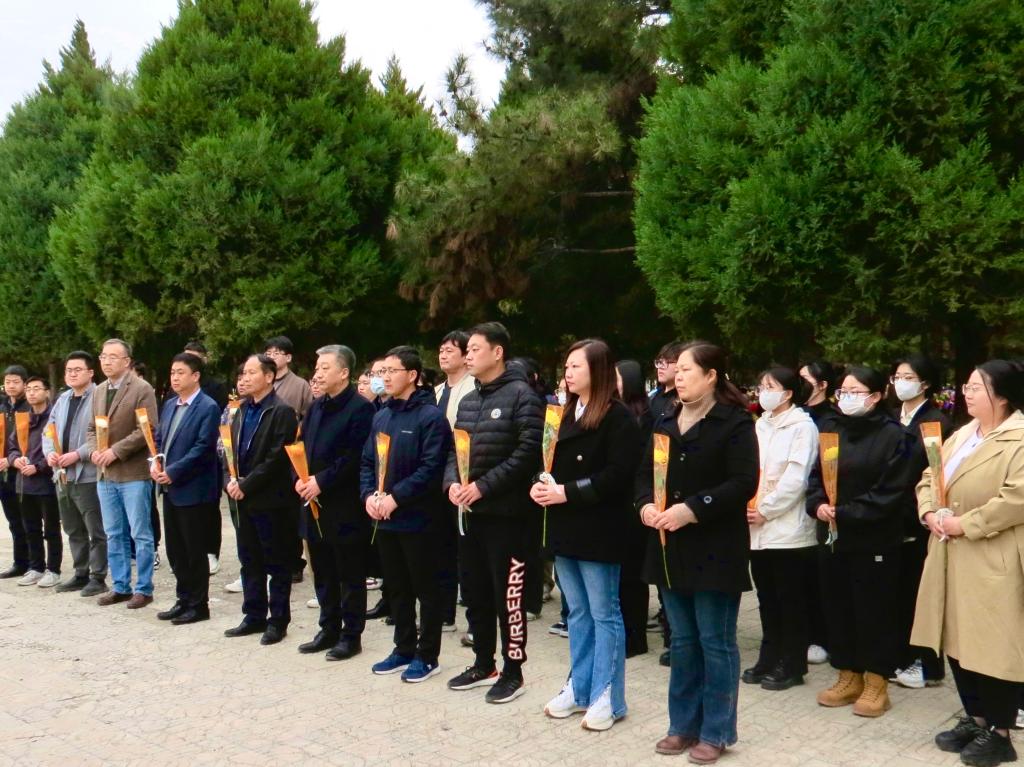 4月1日,bat365官网登录入口党委组织开展清明节祭扫活动,缅怀追思“太行山上的新愚公”李保国老师。校工会副主席李维军、bat365官网登录入口党委书记卢振启、院长李会平、bat365官网登录入口师生代表和李保国老师的家人一行四十余人来到保定烈士陵园,为李保国老师扫墓,缅怀故人,祭奠英灵。