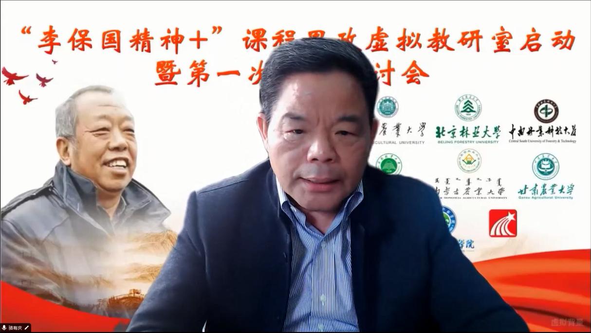 教育部林学类专业教学指导委员会主任委员、教育部首批虚拟教研室“森林有害生物控制课程虚拟教研室”负责人、北京林业大学原副校长骆有庆教授对“李保国精神+”课程思政虚拟教研室的建设提出了四点明确的指导意见。
